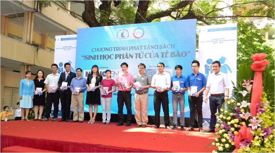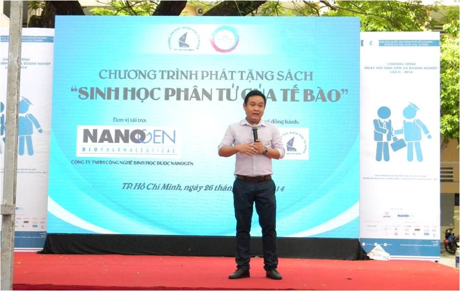 For the first time, Nanogen Biopharmaceutical presented a Molecular and Cell Biology book award program to the representatives of 11 universities and colleges at the "Students and Enterprises" festival on Oct 26 in Ho Chi Minh city. Each school received 20 copies of our translated book. Nanogen will also send the book to many other schools and institutes across the country, not only as common materials for students, lecturers and researchers at their libraries but also as individual awards for excellent students and lecturers. Scientists at Nanogen, including CEO Dr. Nhan Ho, are preparing a Molecular Cell Biology course together with other lecturers at University of Science Ho Chi Minh city, using the materials from the translated book and animated slides provided by Prof. Lodish. Please let us know if you would like to participate in the award program or to develop the Molecular Cell Biology courses at your schools in Vietnam.