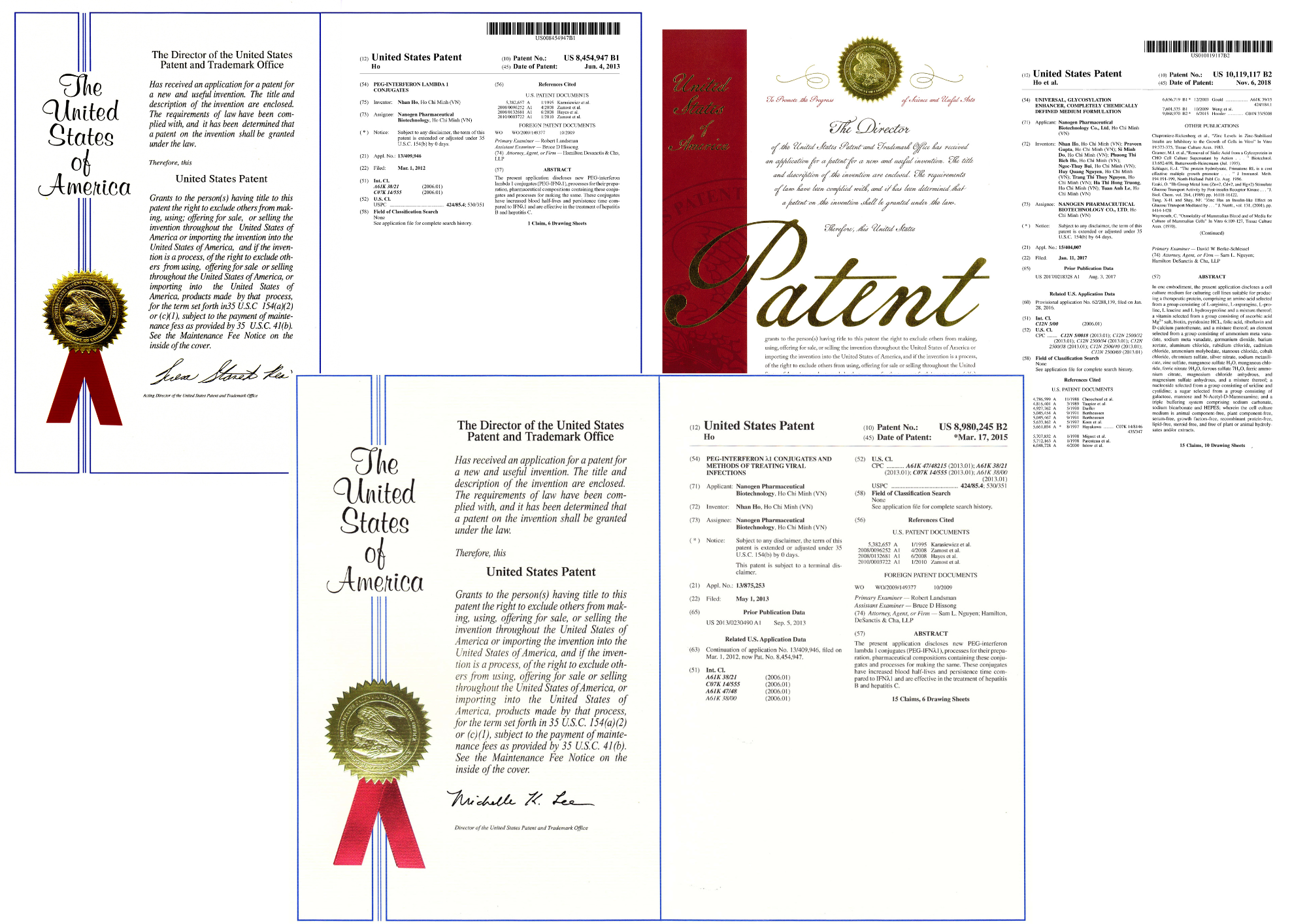 Dr. Nhân held numerous prestigious US patents for his innovations: proprietary cell culture medium, PEG-interferon lambda 1 conjugates (PEG-IFNλ1) and methods of treating viral infections.